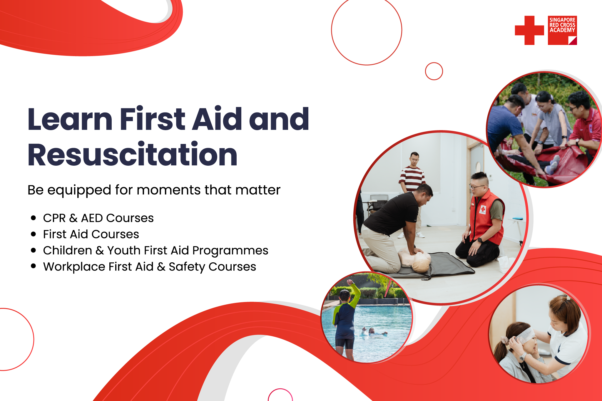 Towards the national goal of having one first aider in every home, the Singapore Red Cross Academy has developed a series of first aid courses catering to all ages and varied needs.