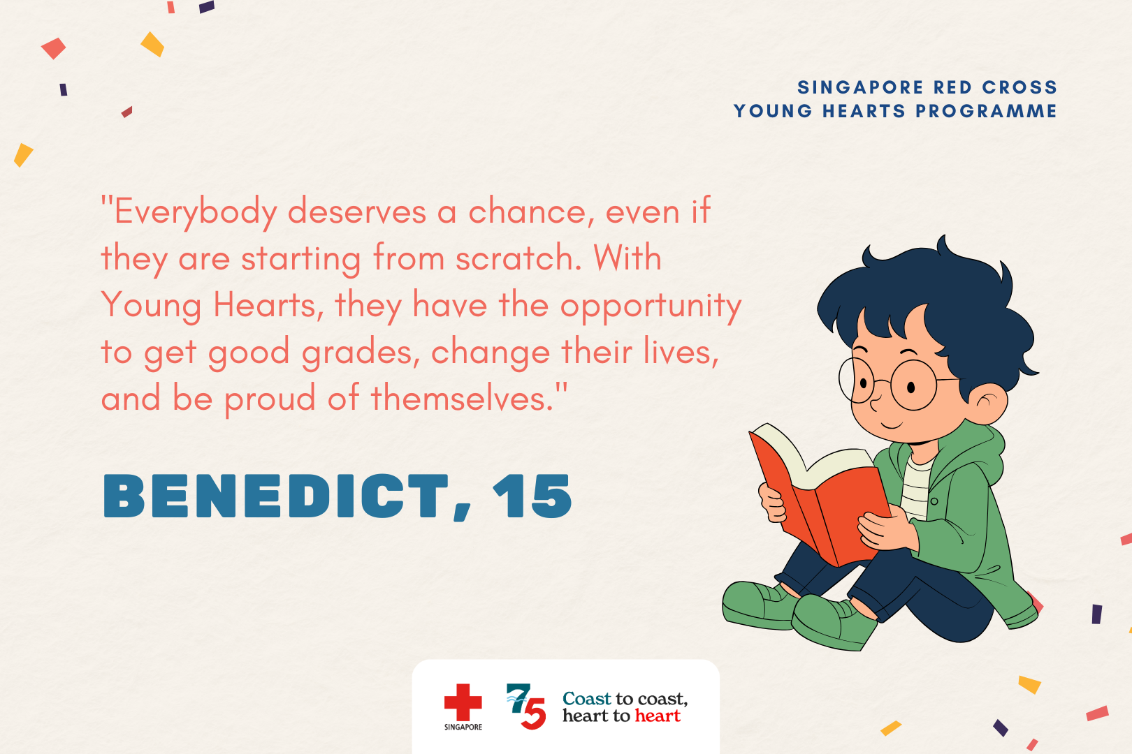 When I did not prioritise my studies, the Singapore Red Cross’ Young Hearts Programme helped me to understand why academics were important. They also gave me the help I needed, in English and in Math, to catch up with my peers through the free tuition provided once a week.