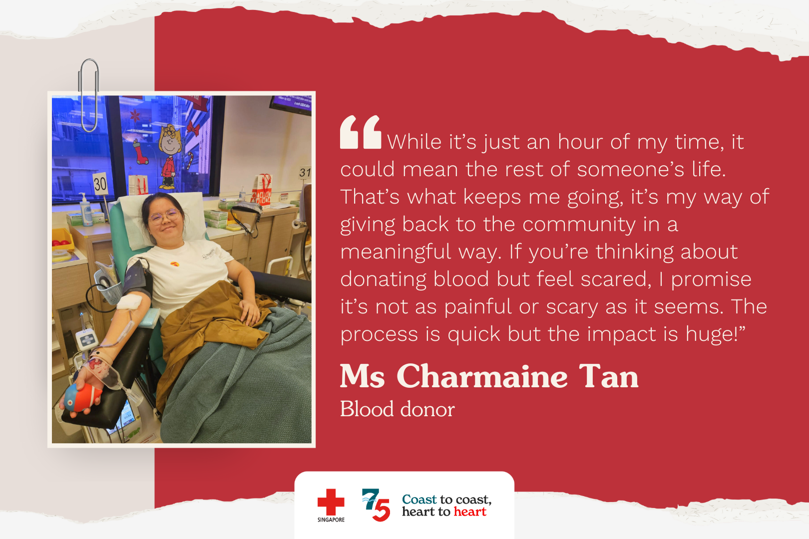 Inspired by Charmaine, her friends have also begun showing interest in giving. As a blood donor herself, she is now able to share her own experience with her friends, answering the questions she once asked her parents.
